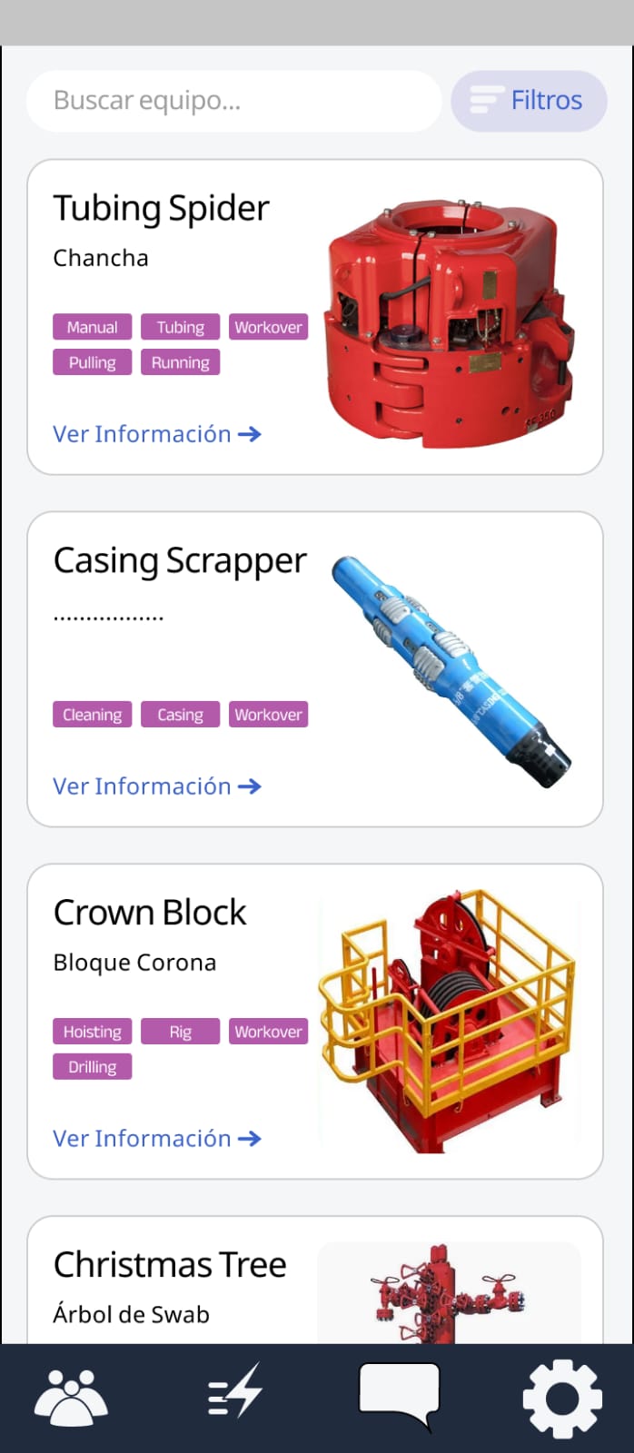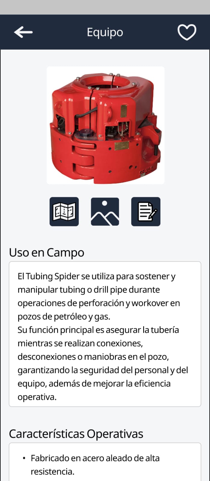 Aplicación que funciona como una herramienta de consulta para verificar y revisar información relacionada con equipos utilizados en operaciones de drilling, workover e intervención de pozos.