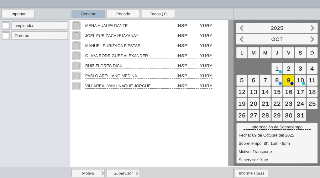 Herramienta desarrollada para automatizar la generación de formatos de registro de horas extras utilizados en procesos administrativos.